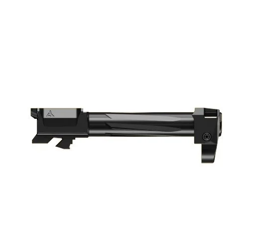 Glock 19 gen.5, Glock 19x, Glock 19 gen.6, Glock 45 gen.5, Glock 45 gen.6 Kompenzátor AFTERBURNER™ je vyrobený z kalenej nehrdzavejúcej ocele a hlaveň RAMJET™ z kalenej nehrdzavejúcej ocele 416R; obe sú vylepšené povlakom Radianite™. Táto kombinácia dosahuje nízke trenie, vysokú tvrdosť a vysokú odolnosť proti korózii, vďaka čomu je celková odolnosť a erózia spôsobená výstrelmi bezproblémová. Šikmé predné plochy kompenzátora AFTERBURNER uľahčujú nosenie v puzdre. Montážny systém INTRA-LOK® využíva princíp kužeľového zámku; kužeľovitá zaisťov...